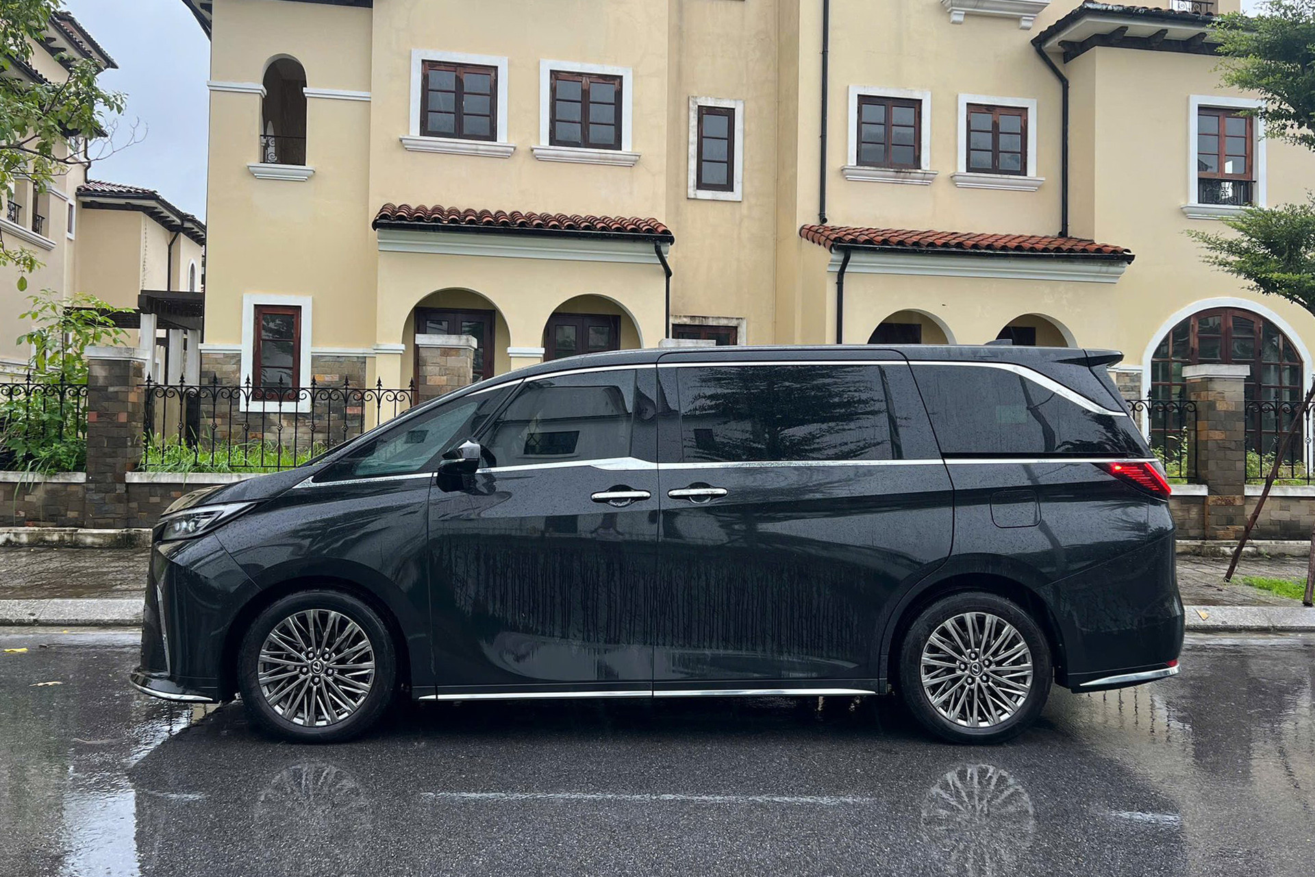 Chiếc Lexus LM 500h bản 6 chỗ về cơ bản thiết kế không khác phiên bản 4 chỗ về ngoại thất, chỉ khác cấu hình số chỗ ngồi trong nội thất. Chiếc xe đang rao bán có ngoại thất màu đen, đi kèm bộ mâm đa chấu kích thước 19 inch. Mọi chi tiết trên xe còn rất mới do vừa lăn bánh 1 tháng.